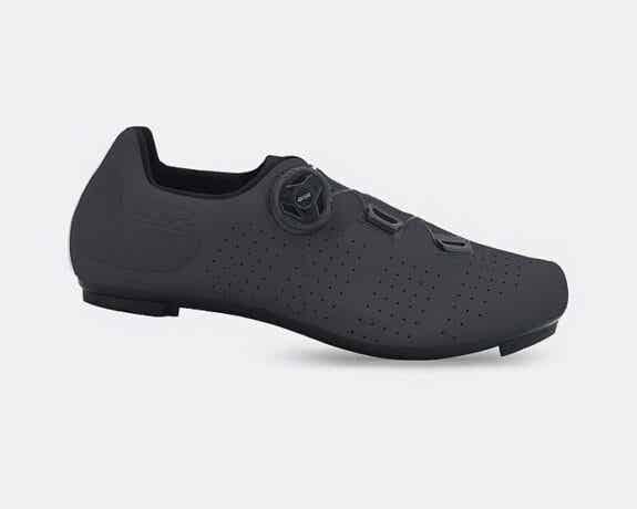 ソールにはグラスファイバーインジェクション・ナイロン製の「R250」を採用。剛性指数は7と、ミドルグレードながら高いパワー伝達性を備えています。アウトヒールカップによってかかとまわりの耐久性が向上し、シリコンドットとパッドの追加でホールド感もアップ。クリートは3ホール対応で、SHIMANO SPD-SLやLOOK KEOなど主要規格に対応。Look memory eyelet®にも対応しています。