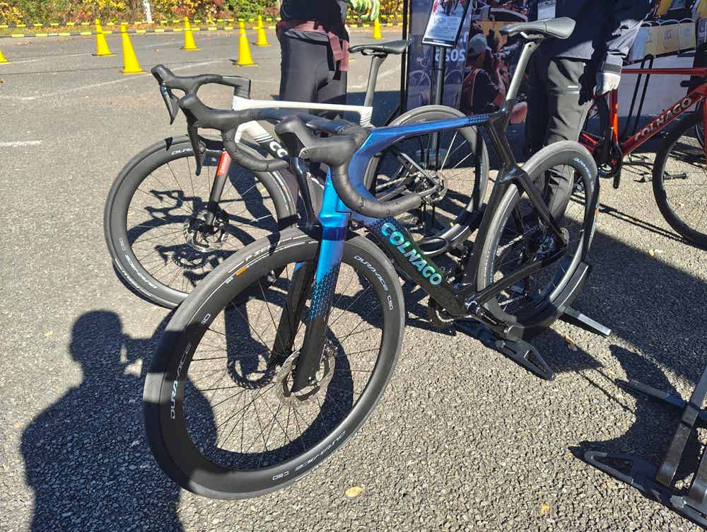 コルナゴブースでは最新スペックのカーボンロードバイクも試乗できます。