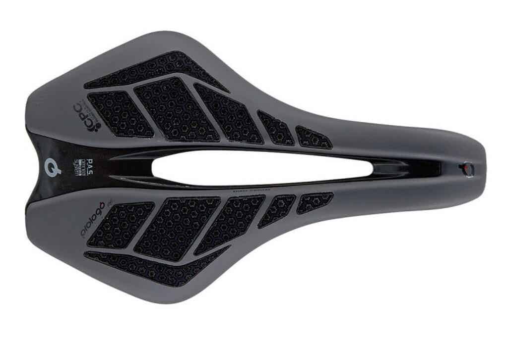 サドル選びでは、溝や穴の有無も大切なポイントです。プロロゴのサドルは「PASシステム」と呼ばれる穴あきモデルが主流で、陰部への圧迫やお尻の蒸れを軽減する効果が期待できます。