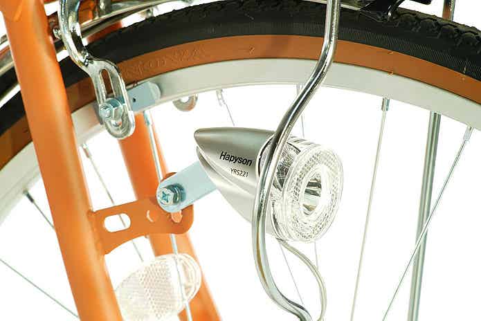雨上がりや急な雨でも、路面からの泥はねをしっかりガードする泥除けを前後に装備。大切な服や荷物を汚れから守ってくれるため、天候が不安定な日でも気兼ねなく自転車に乗ることができます。