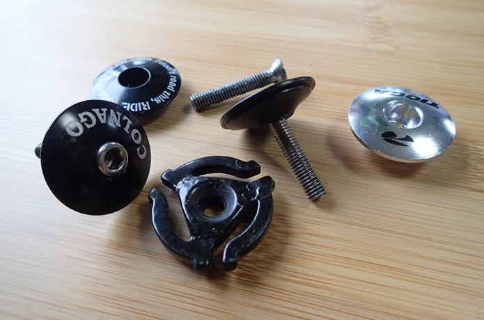 ステムキャップは、ステムの上の穴を塞ぐパーツで、ステムを確実にセットするためのパーツです。ステムキャップがないと、ステムやフロントフォークがガタついてしまうでしょう。