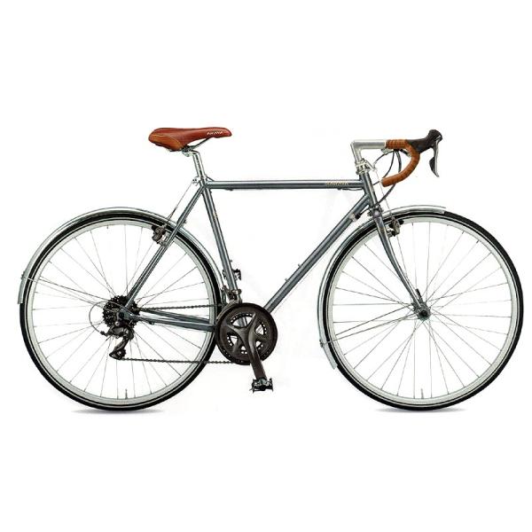 ツーリングにも行ける仕様のロードバイク。太めのタイヤに泥よけがついていて、多少の凸凹な道もへっちゃら。オプションのキャリアをつければ、大型の荷物も積めますよ。ブレーキは、メンテナンスしやすい「カンチブレーキ」。