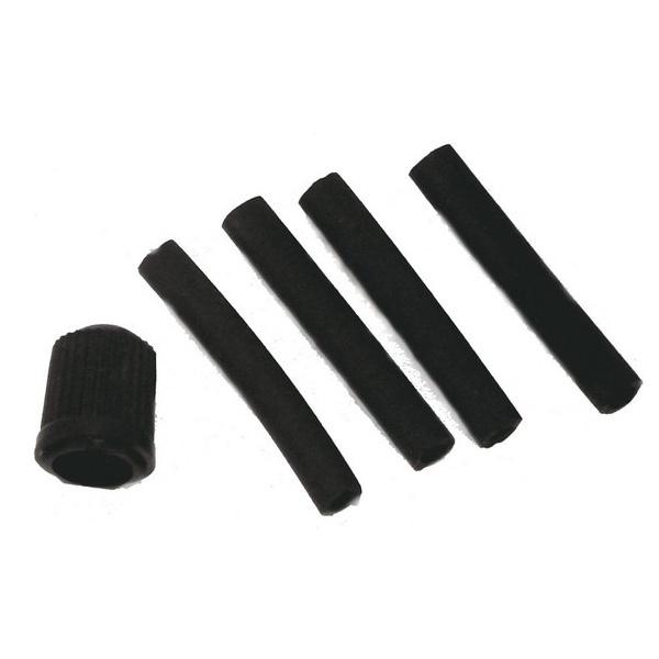 カットされた虫ゴム4本に、キャップが1個付いたセット。ゴムチューブをカットする手間がありません。キャップも失くしやすいので、予備があると助かります。
