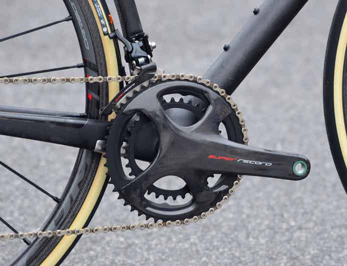Campagnoloのロードグループセットは、グレード順に、SUPER RECORD>RECORD>CHORUS>CENTAURの4つのラインナップがあります。